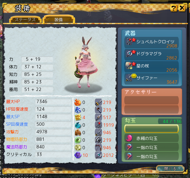 | 高野の勾玉 | 0 | 25 | 0 | 0 | 14 | 弓能力+31% 短杖能力+20% |